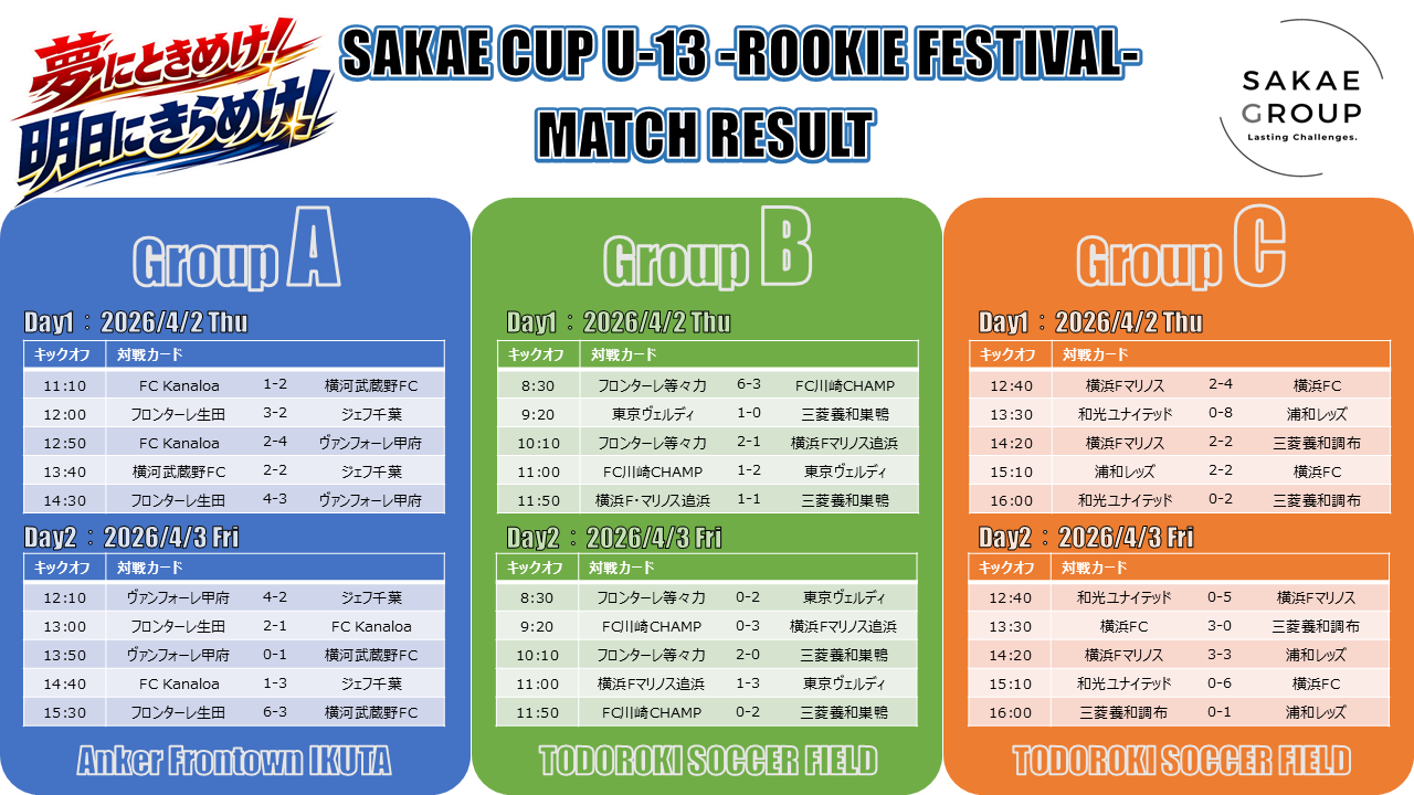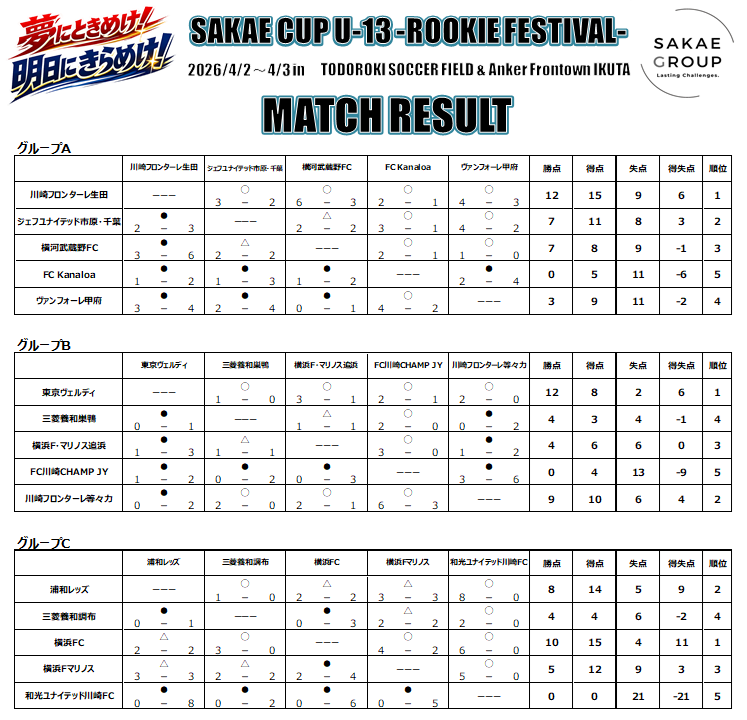 SAKAE CUP U-13 -ROOKIE FESTIVAL- 最終結果